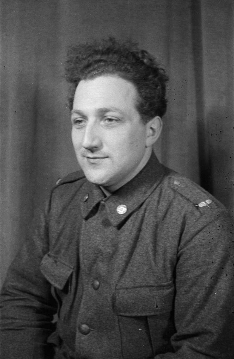 Porträttfoto av soldat Artur Gustaf Andersson (nummer 1980), bilreparatör vid F 19, Svenska frivilligkåren i Finland under finska vinterkriget, 1940.