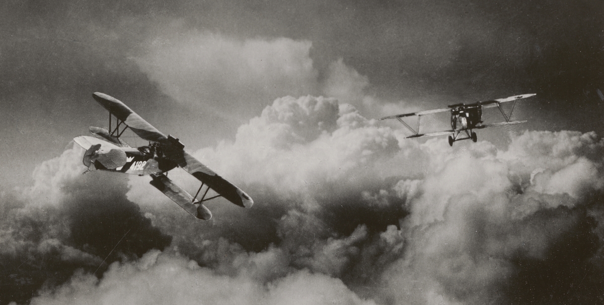 Två flygplan Phönix E.2 Dront i luftstrid ovan moln. Till vänster nr 4192.