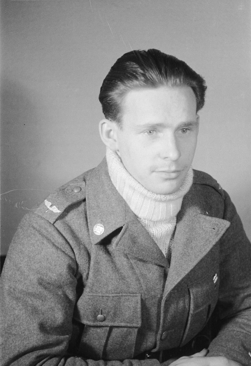 Porträttfoto av översergeant Matti Sundsten (nummer 857), flygskytt vid F 19, Svenska frivilligkåren i Finland under finska vinterkriget, 1940.
