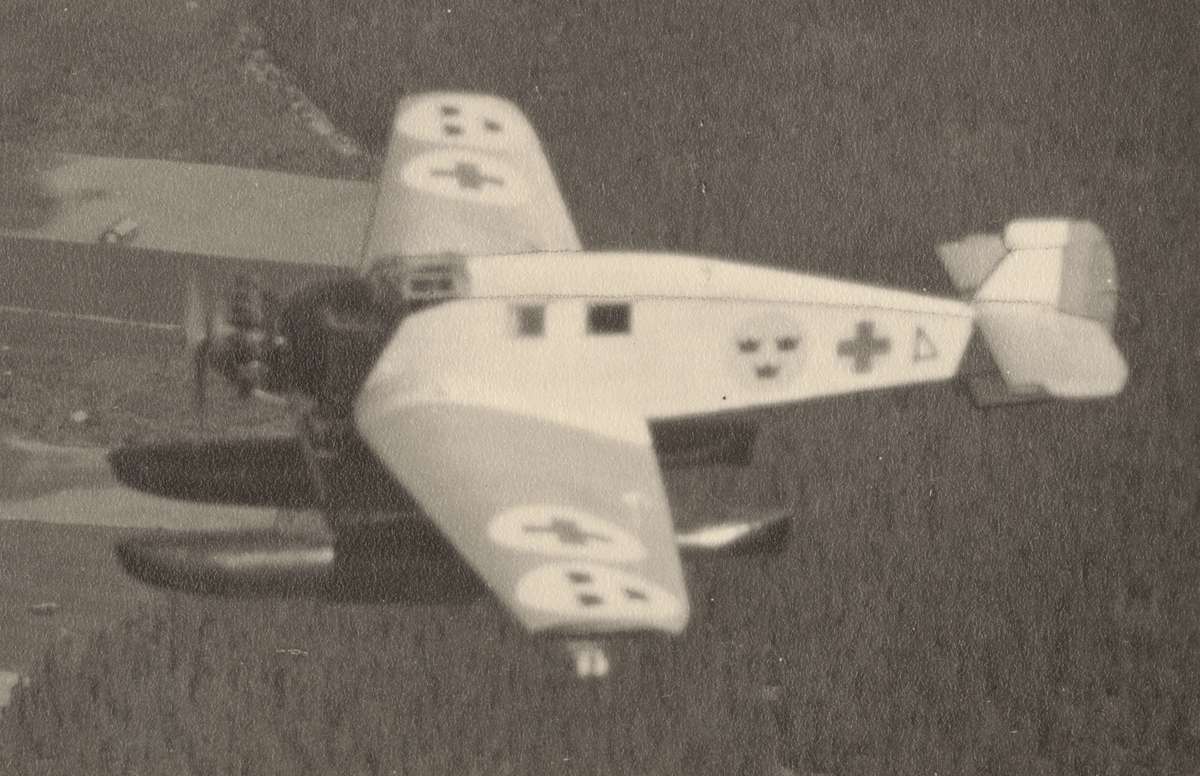 Ambulansflygplan Trp 2, Junkers W 34 märkt nummer 4 i luften. Flygbild, vy snett uppifrån.