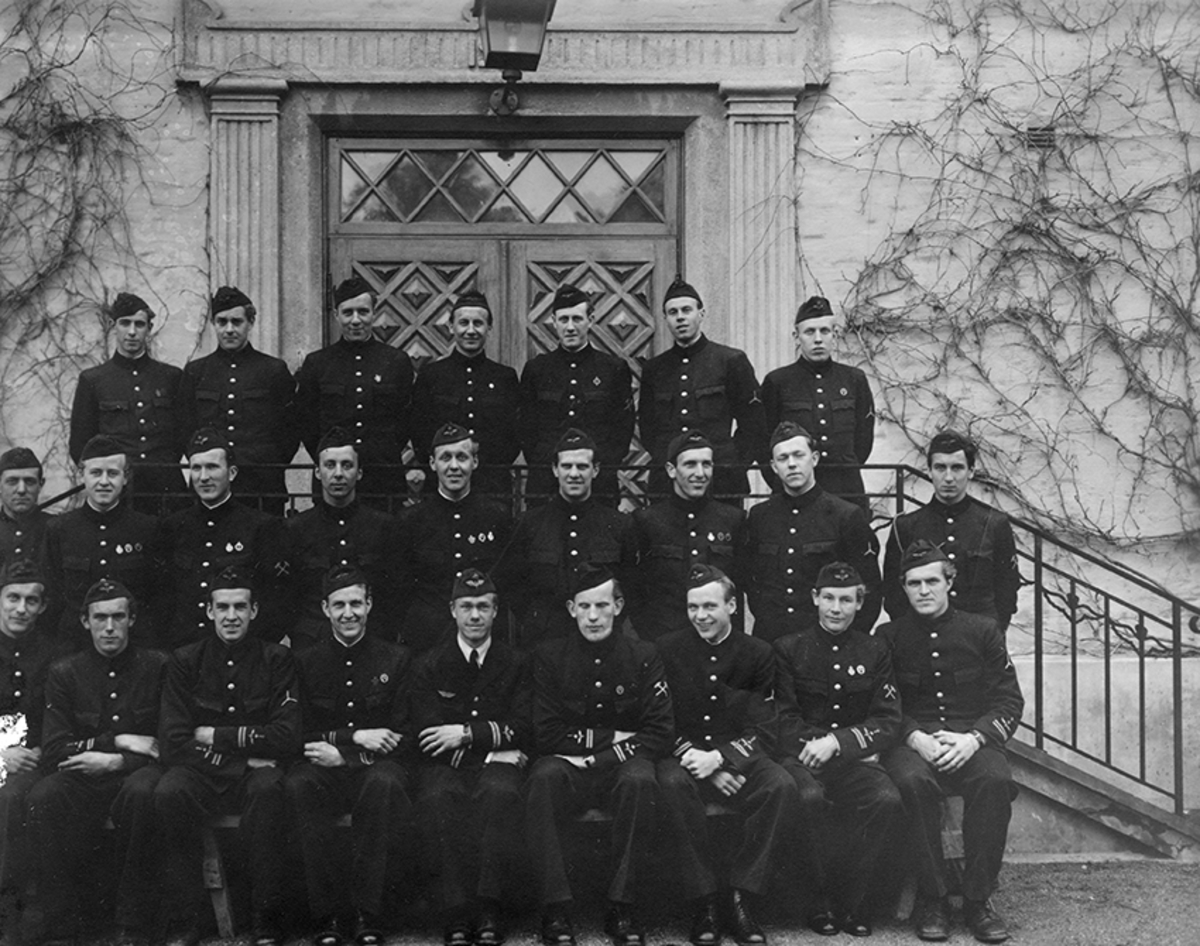 Gruppbild av elever på furirskolan på F 2 Roslagens flygflottilj 1944-1945