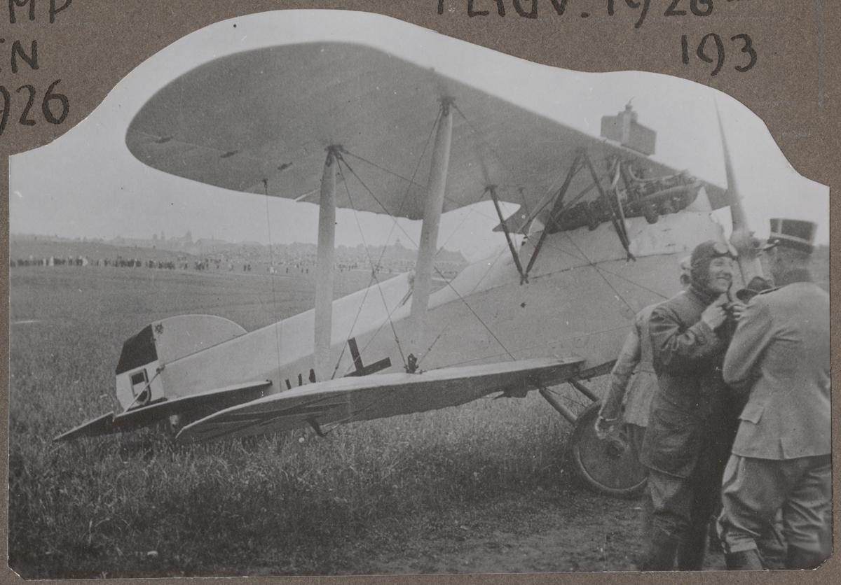 Text vid foto: "Jaktplan Typ Phönix - J 1. Flygkomp Malmen 1919-1926. Flygv. 1926-193. Sparmann med urplanet - Ladugårdsgärde 1919. Flygledes från Österrike."