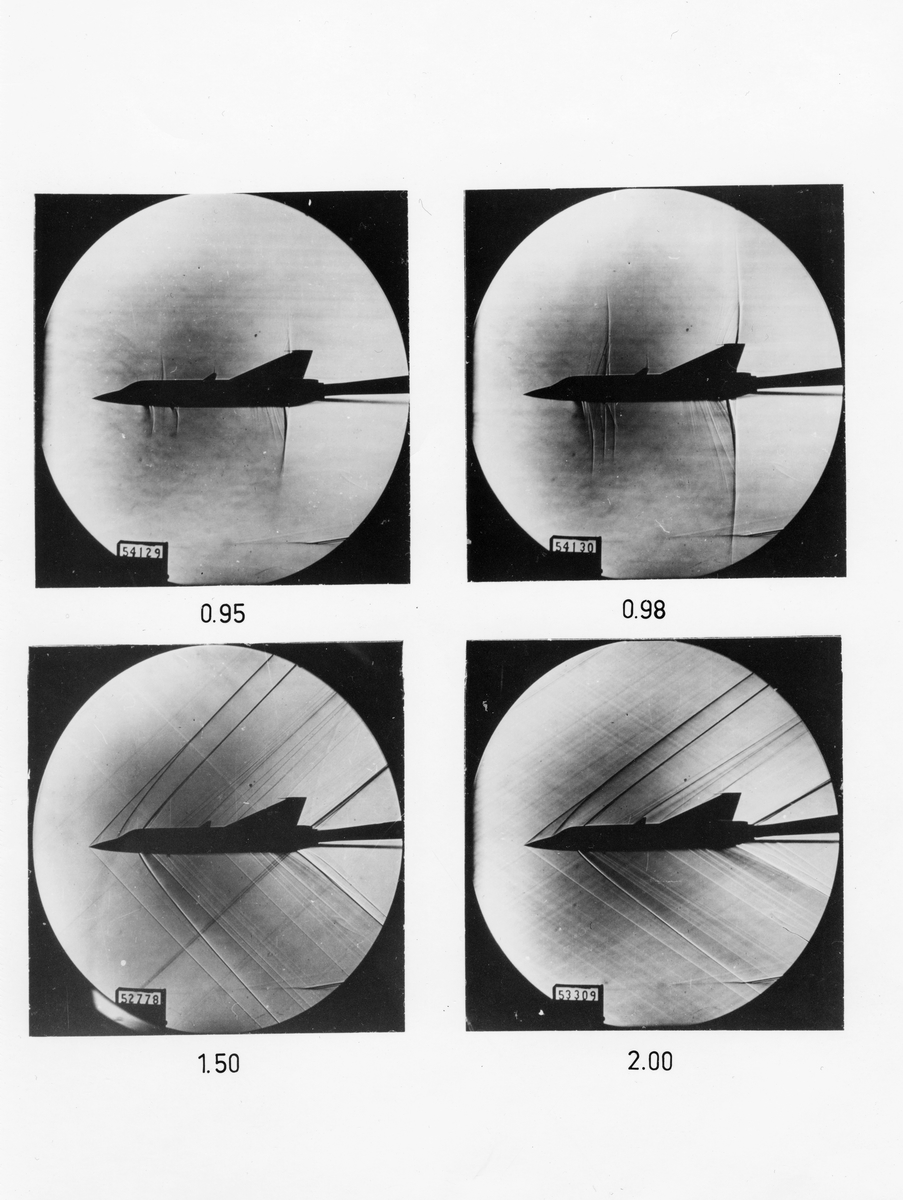Slirbilder av vindtunnelmodell av flygplan J 35 i skala 1:30.