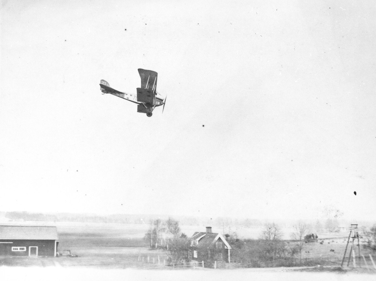 Flygplan Albatros NAB 9 nummer 762 flyger över Centrala verkstäderna Malmslätt.