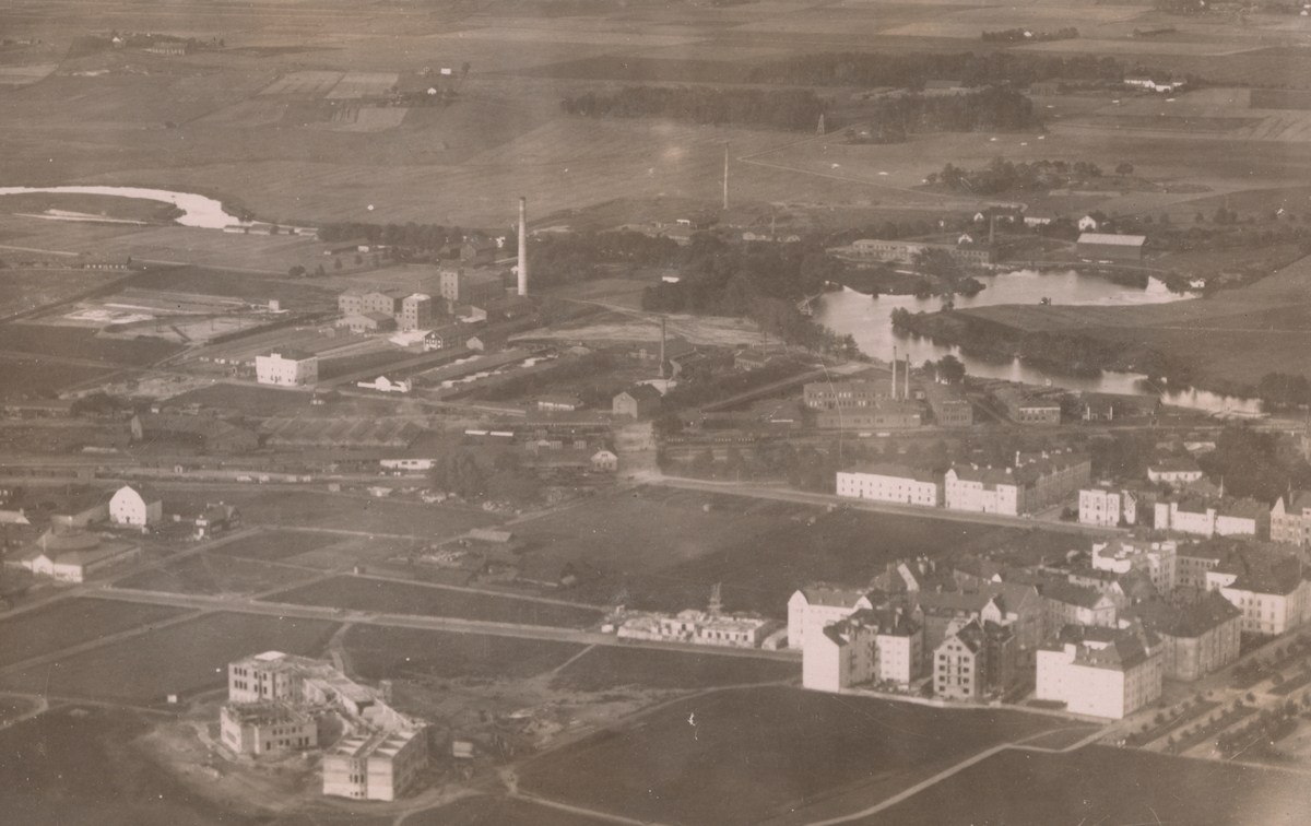 Flygfotografi av Linköpings nordvästra del med Nykvarn, 1914.