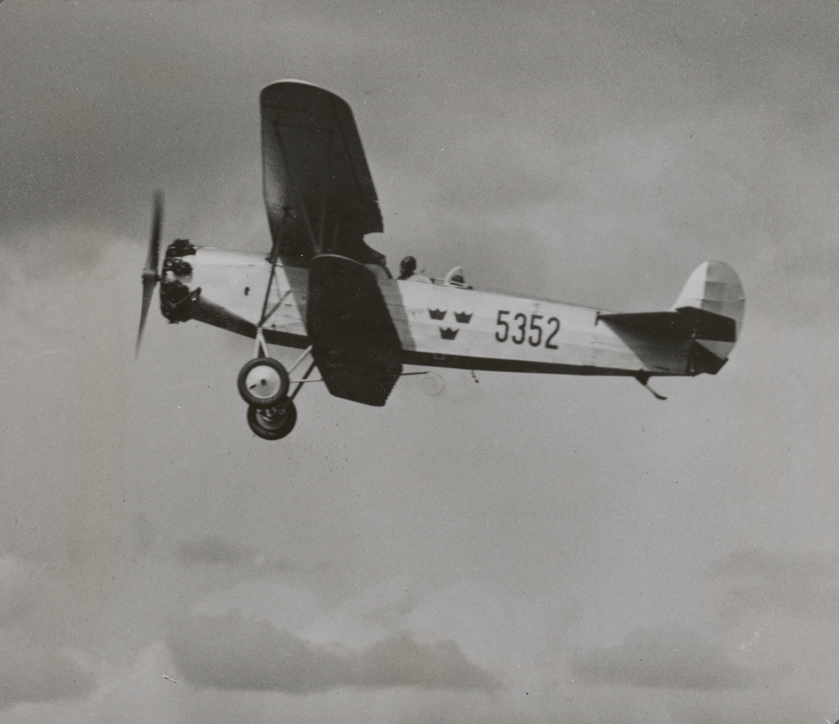 Flygplan S 6, Fokker C.VE nr 5352 tillhörande F 5 Krigsflygskolan i luften. Omkring 1932-1935. Flygbild.