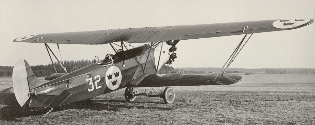 Flygplan S 6 märkt nummer 32 på flygfältet på F 3 Malmen, cirka 1937-1932. Vy snett bakifrån.