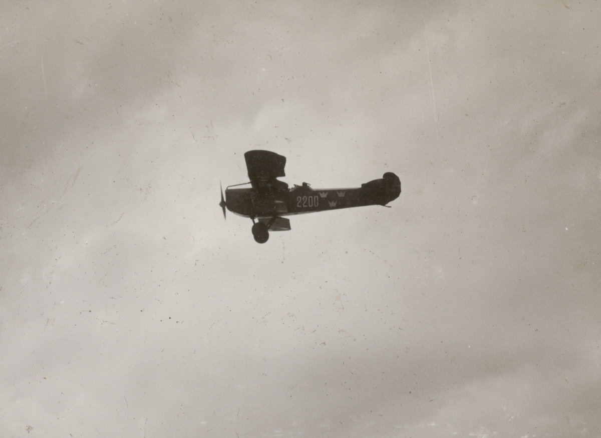 Flygplan FVM S 21 nr 2200 i luften, 1925. Vy från sidan, nedifrån.