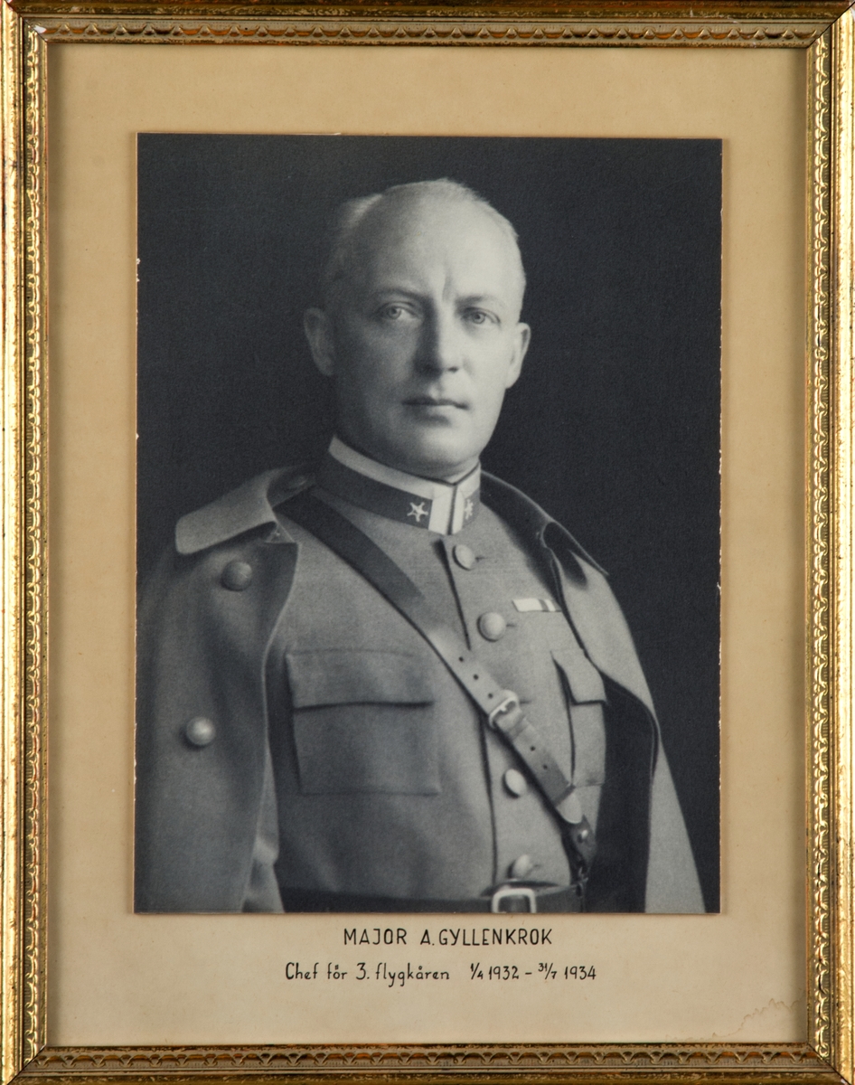 Porträttfotografi av Axel Gyllenkrok, chef för 3. flygkåren, 1932-1934. Inramat foto.