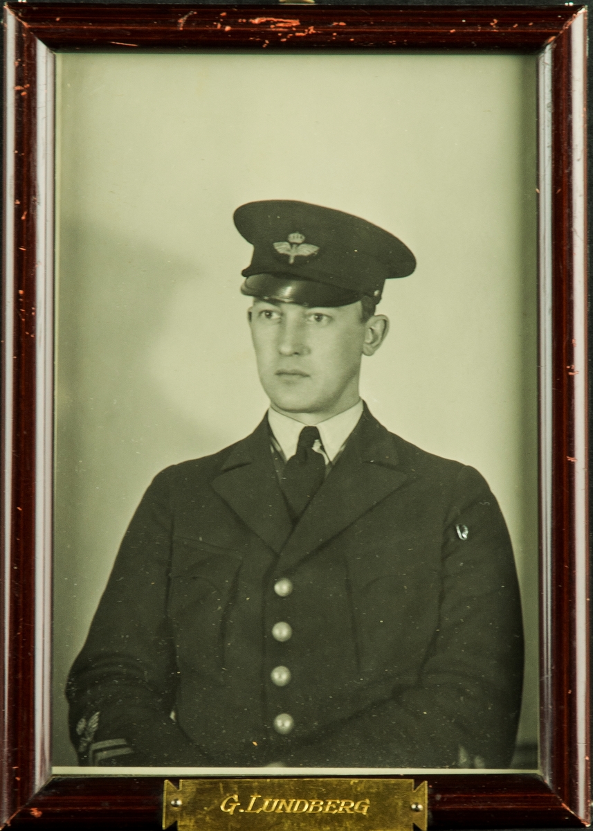 Porträttfotografi av militären G. Lundberg, kompaniofficer på F 3 Östgöta flygflottilj.