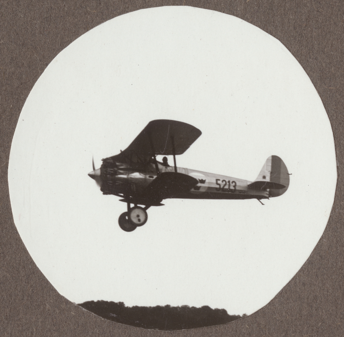 Flygplan J 7, Bristol Bulldog i luften på låg höjd. Vy från sidan.