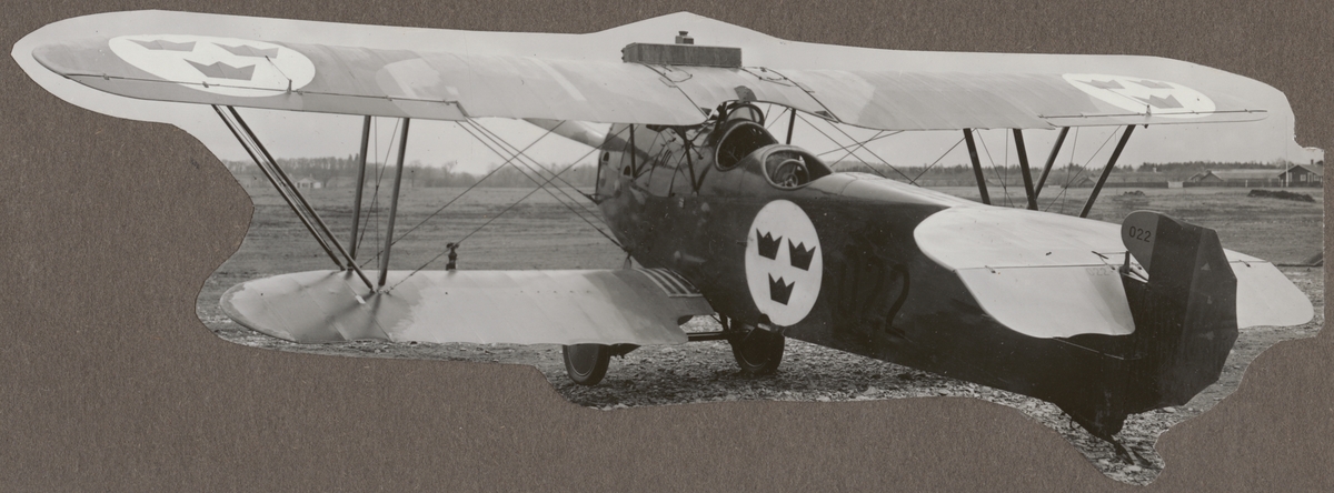 Flygplan Ö 4 FVM Phönix C.I Dront nr 022 står på flygfältet på F 5 i Ljungbyhed.