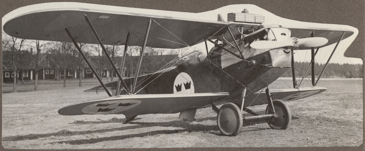 Flygplan A 1 Phönix E.2 Dront märkt nr 3192 står på flygfältet på F 3 Malmen, 1928-1929. Vy snett framiifrån.