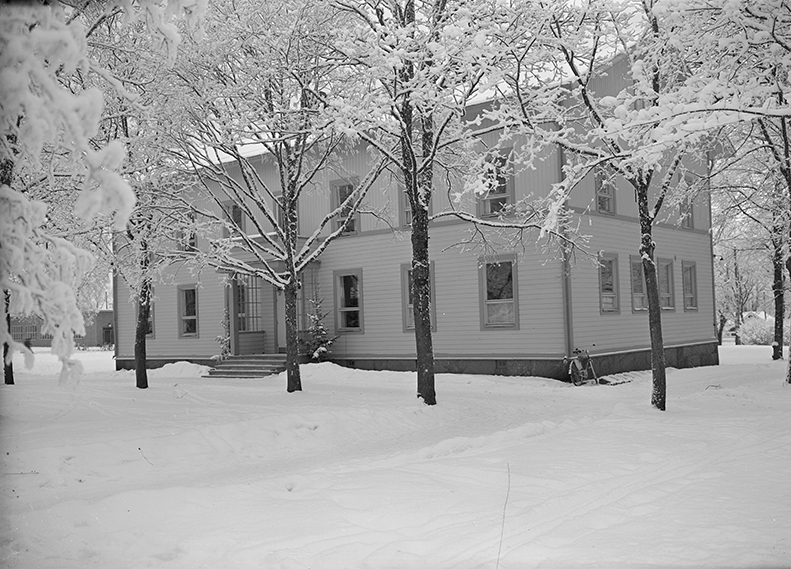 Sjukhuset på F 3 Malmen, 1942. Exteriör ur två vinklar.