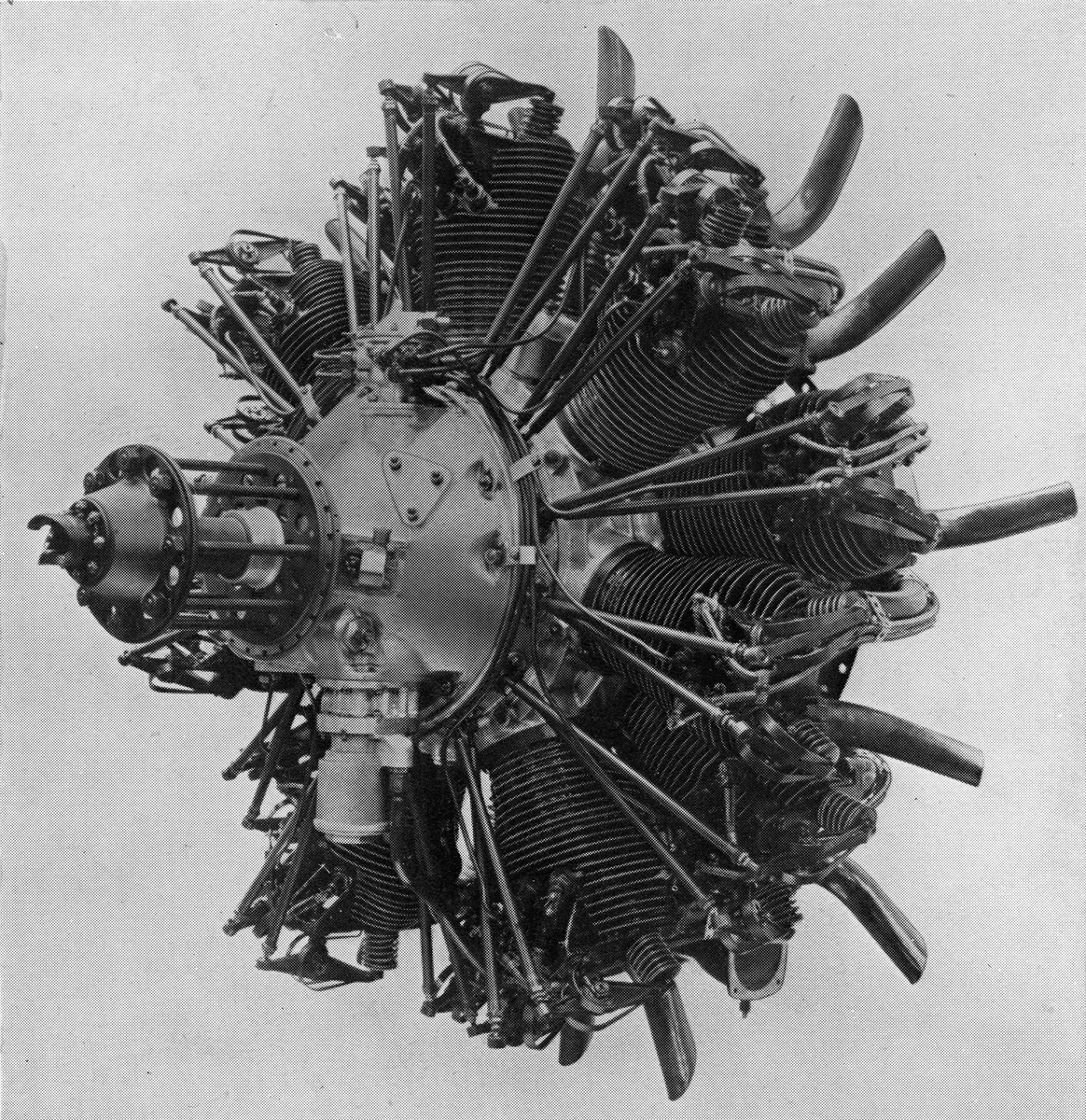 Flygmotor Armstrong Siddeley AS Jaguar, tillverkad 1924, för flygplan J 5. Monterat foto med tillhörande information.