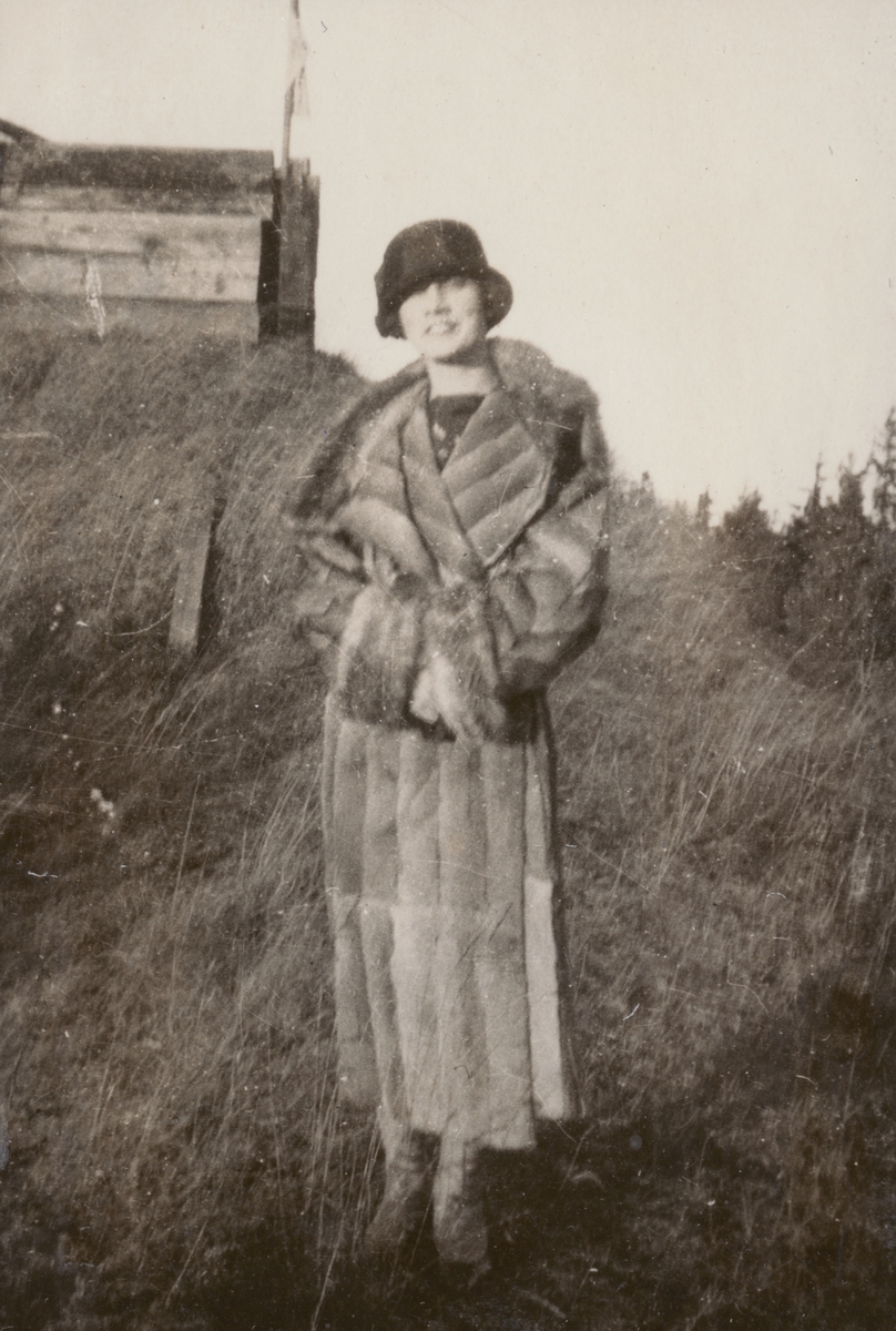 Porträttfoto av Anna Linderstam vid militär anläggning, 1924.