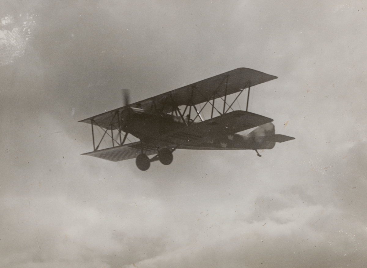 Flygplan Fiat BR 1 (B 1) i luften, 1925. Vy nedifrån.