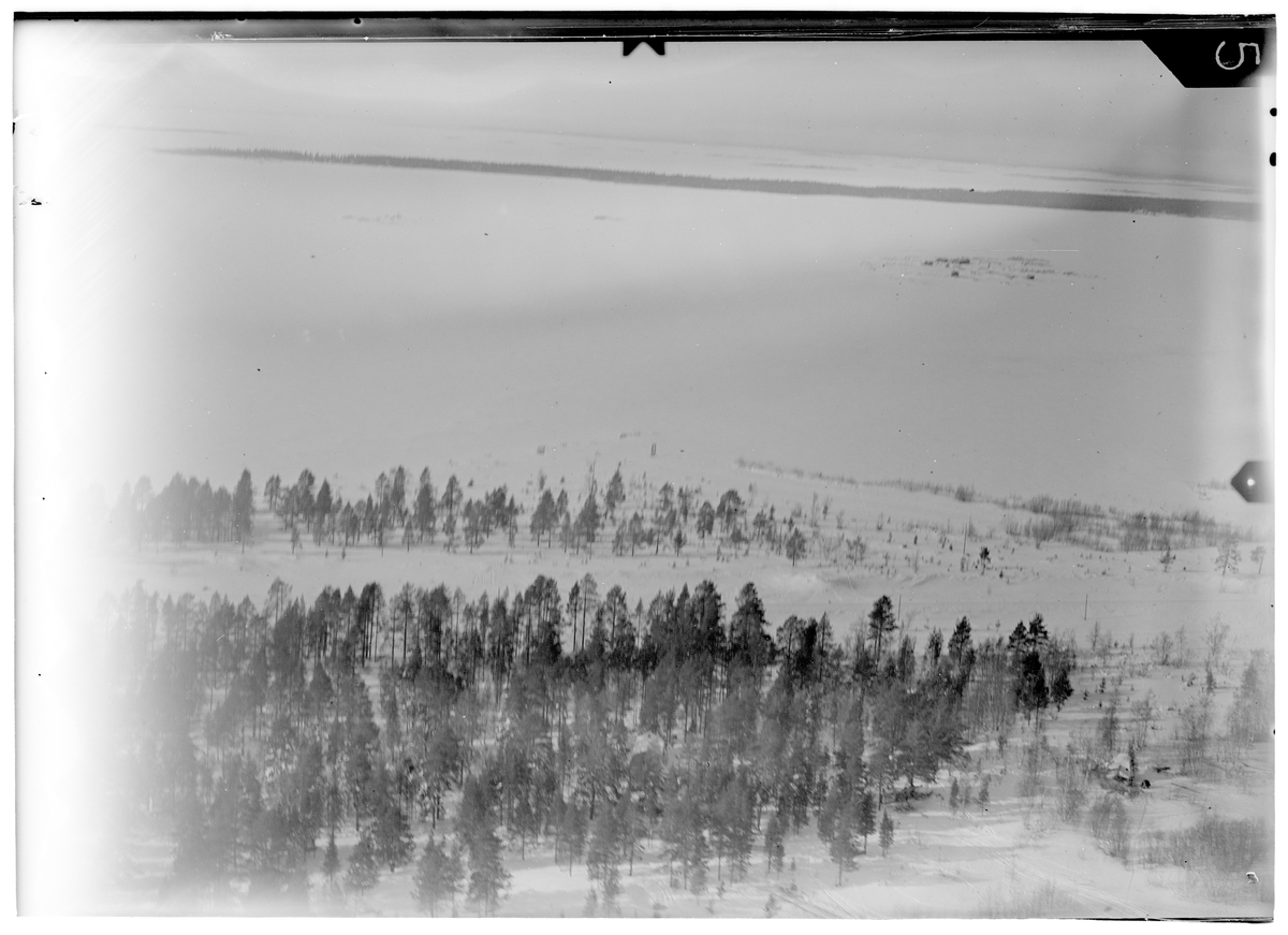 Flygfotografi av del av flygstationen på bakre basen i Veitsiluoto under finska vinterkriget 1940. Från F 19, Svenska frivilligkåren i Finland.