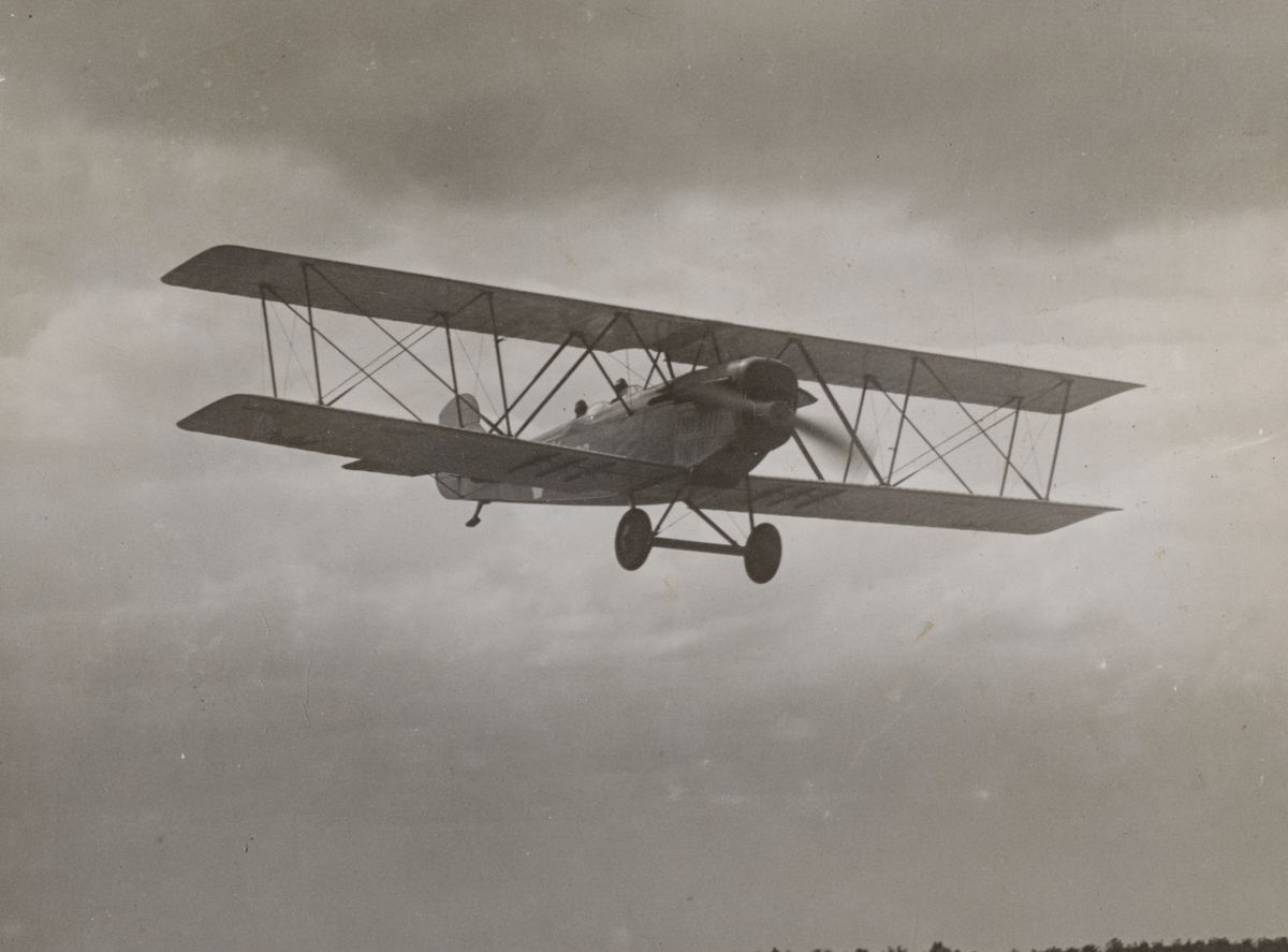 Flygplan Fiat BR 1 (B 1) i luften, 1925. Vy snett framifrån.