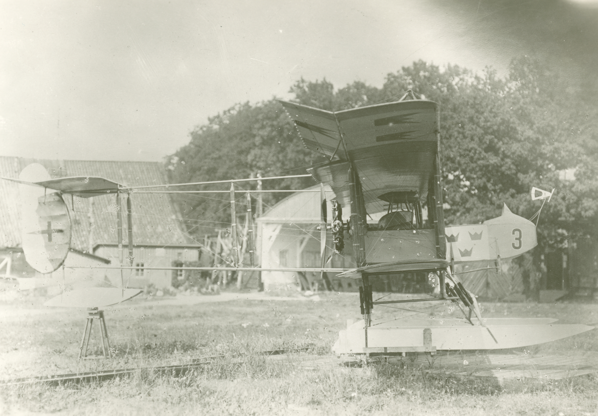Marint flygplan Farman HF 23, märkt nr 3, uppställt på Galärvarvet i Stockholm, omring 1914-1920.
