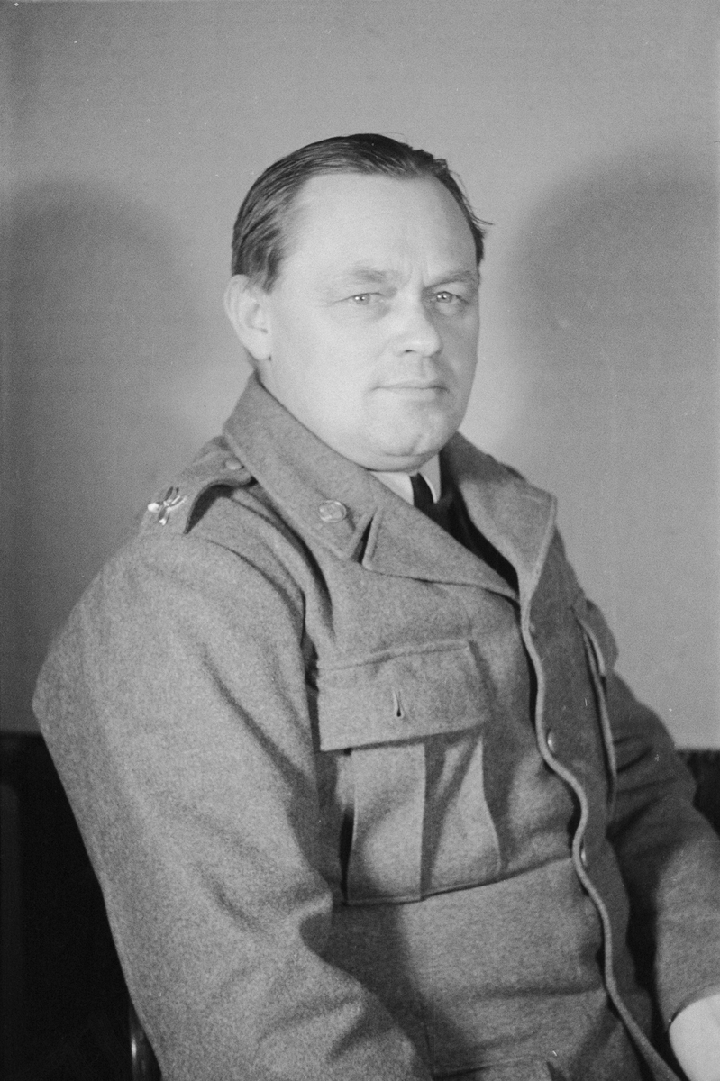 Porträttfoto av fältväbel Johan Valdemar Morin (nummer 849), vid F 19, Svenska frivilligkåren i Finland under finska vinterkriget, 1940.