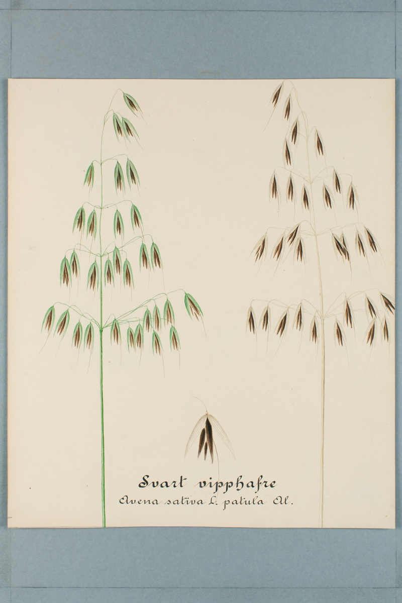Sveriges kulturväxter. Illustration utförd av Henriette Sjöberg. Havre, Vipphavre, svart. Odlingsplats och datering saknas.