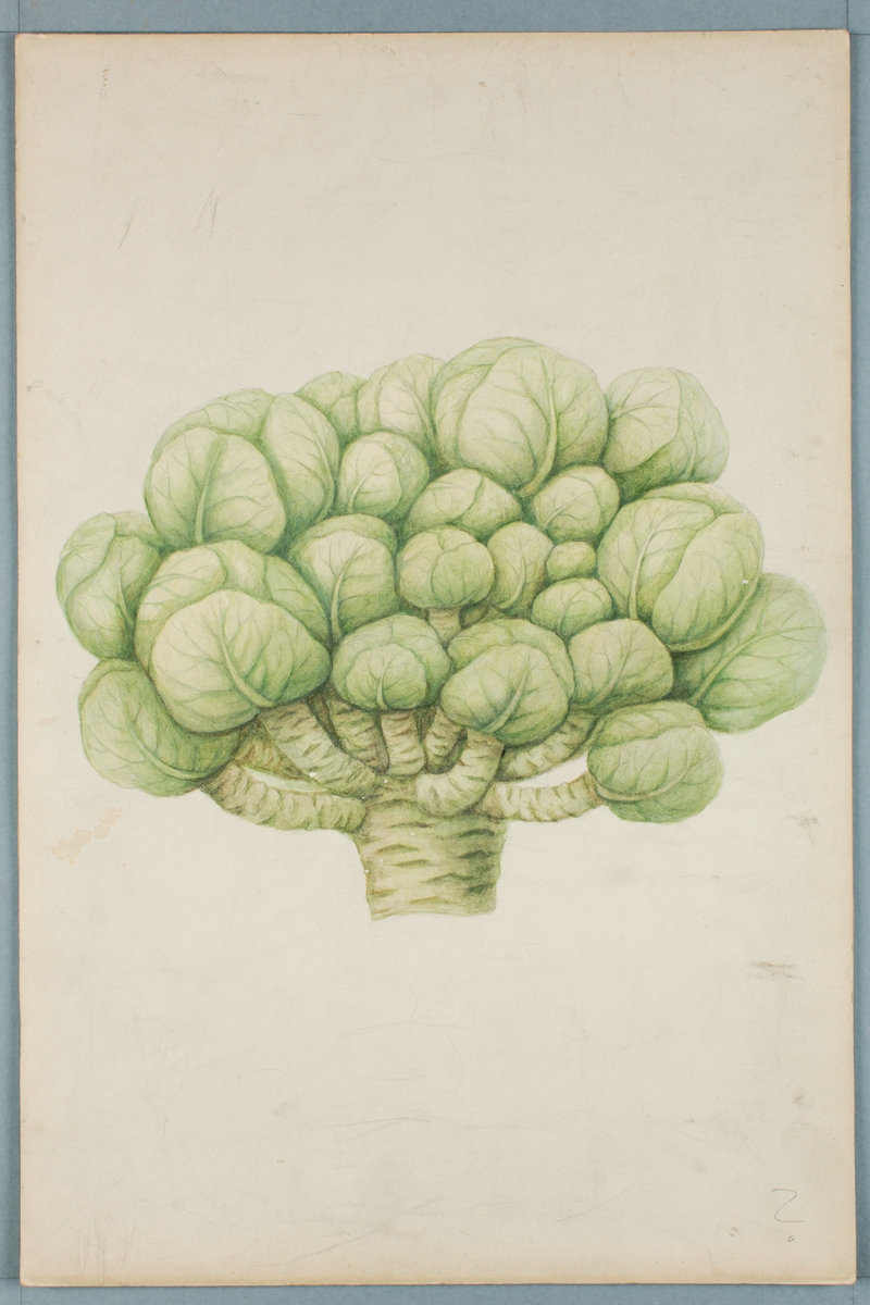 Sveriges kulturväxter. Illustration utförd av Henriette Sjöberg. Kål, okänd sort. Odlingsplats och datering saknas.