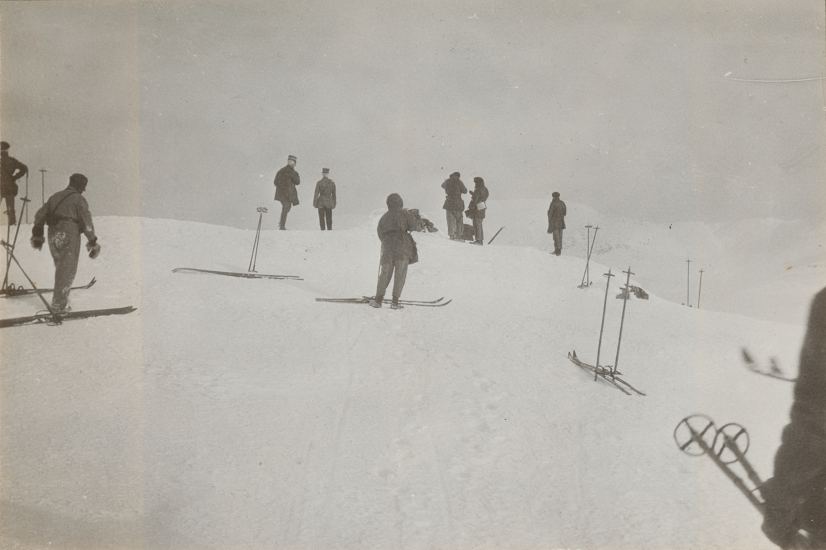 Titel: Elever från stridsvagnskursen vid Göta livgardes stridsvagnsbataljon har nått ett fjälltopp.