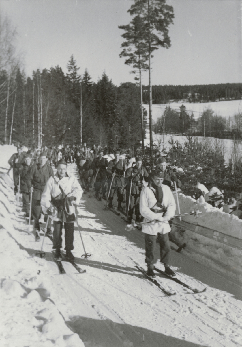 Titel: Bildtext: "Marschen mot söder. I täten 1. kompaniet."