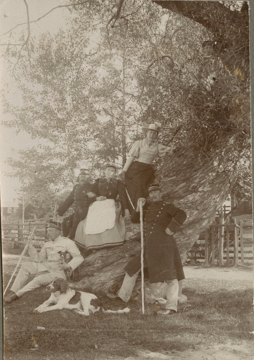 Titel: Officerare med sina fruar vid ett stor träd vid vägen till garnisonsgården i Mohed.