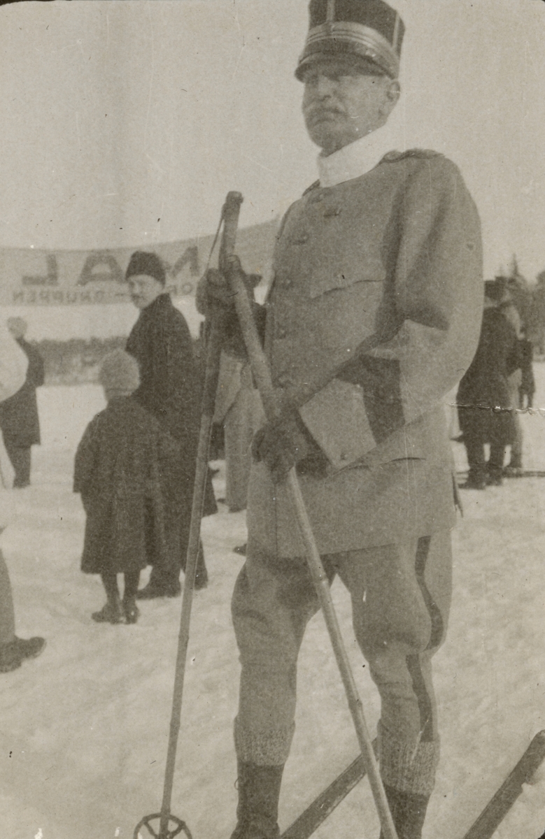 Bildtext: "Från militära skidtävlingarna under Nordiska spelen i Stockholm, februari 1917."