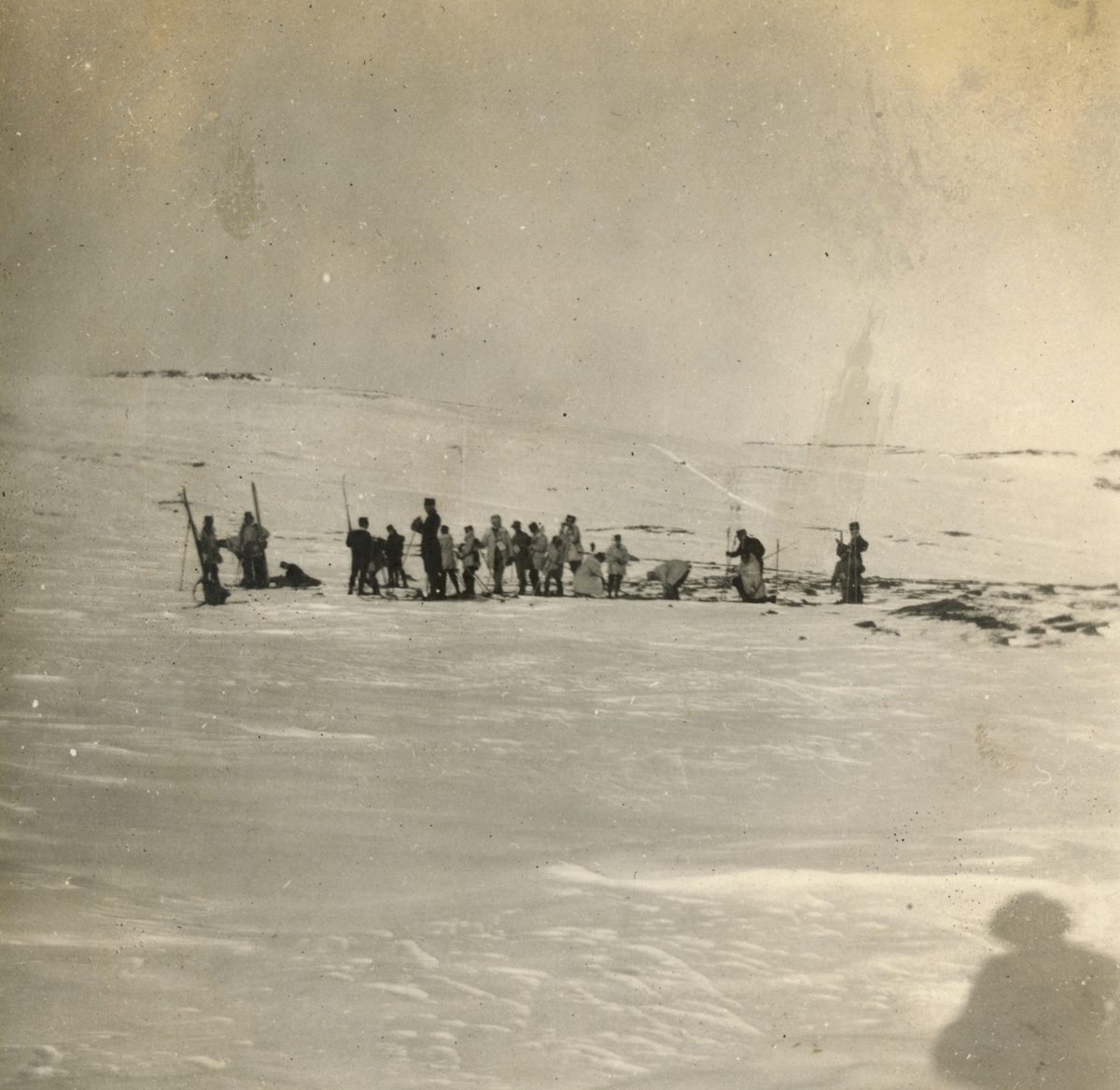 Titel: Text i fotoalbum: "Färden öfver Snasahögarna. Smörgåsrast vid Snasarnas fot".