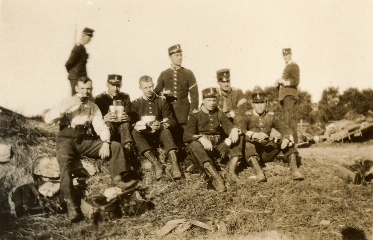 Titel: Rast under fälttjänstövning.