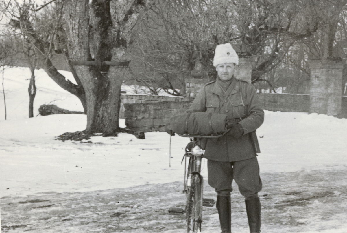 Titel: Text i fotoalbum: "Komissarieskolan vid I 9 Depå Axvall febr-mars 1941. Övningar. Bästa eleven".