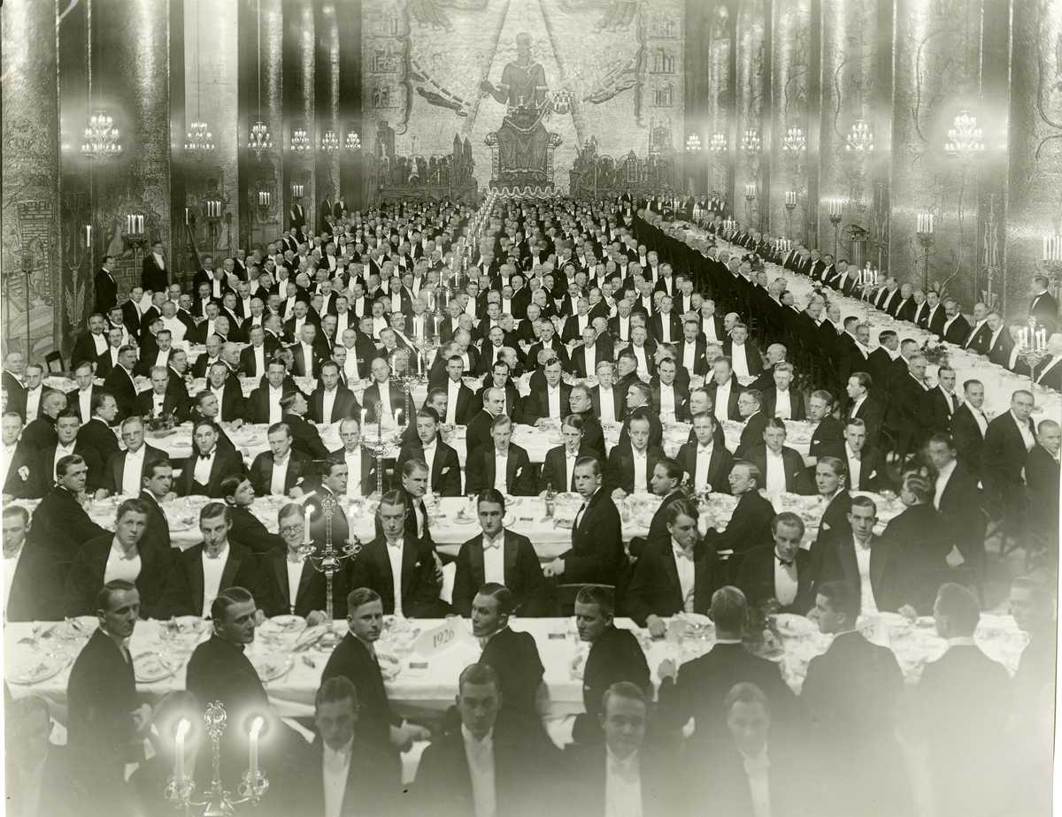 Studenter firar Norra Latin 50 år i Gyllene salen, Stockholms stadshus.