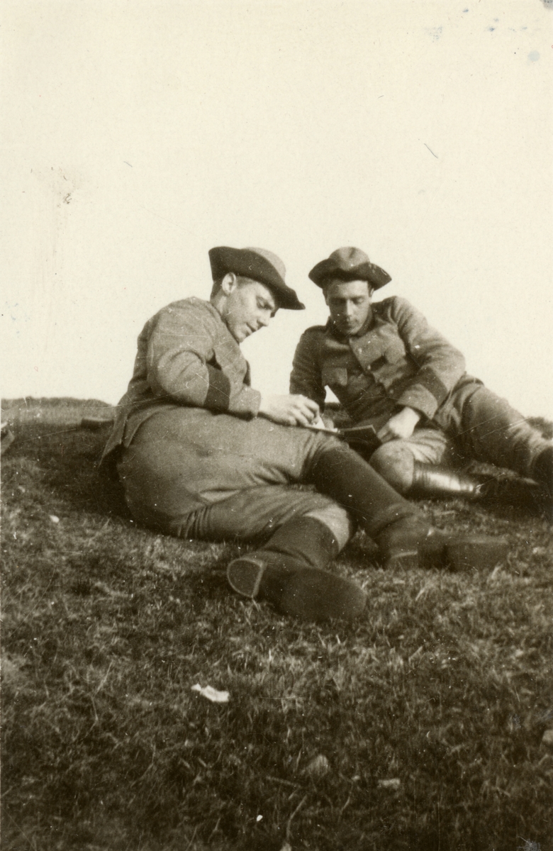 Titel: Text i fotoalbum: "Officersaspirantskolan 1925-1926. Skissritning".