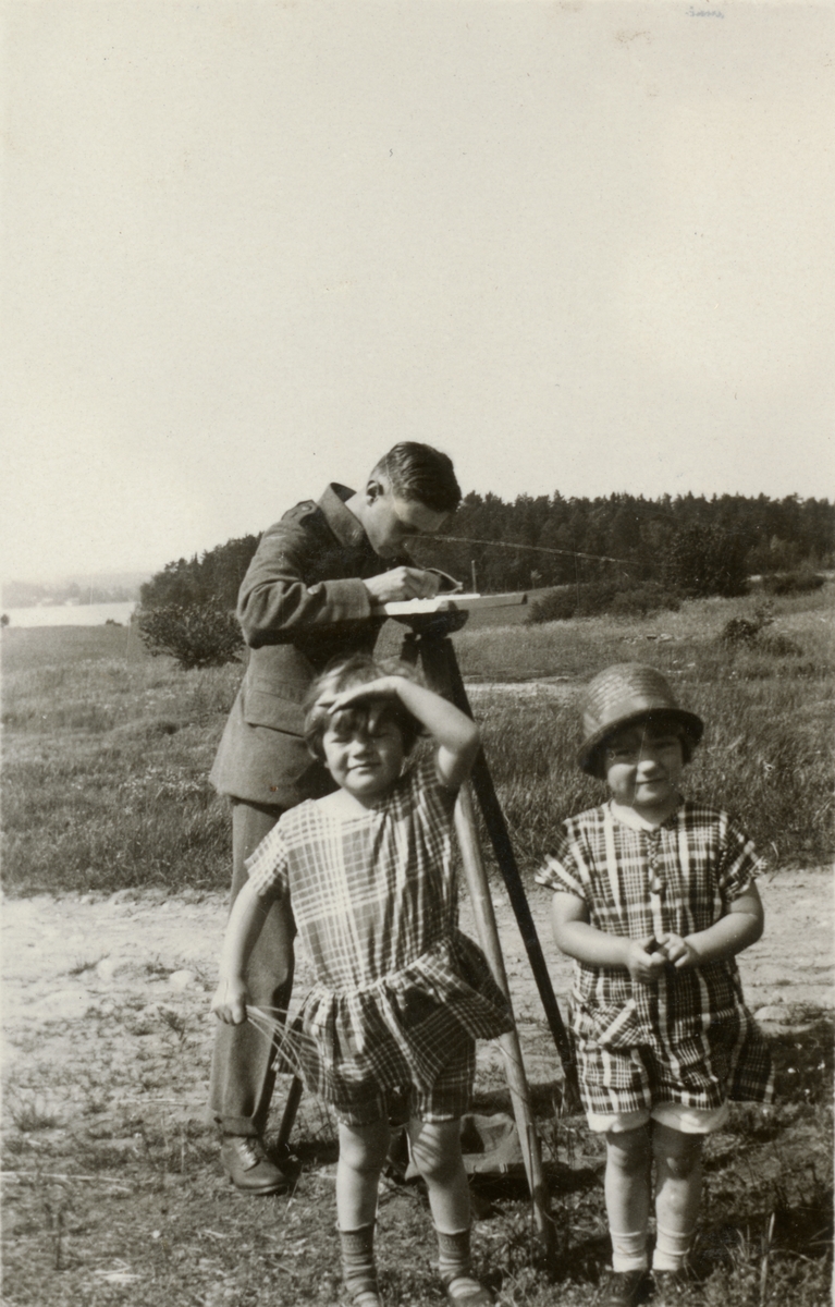 Titel: Text i fotoalbum: "Krigsskolan 10 okt 1926 - 31 dec 1927. Fältmätning på Lovön. Sten Klint".