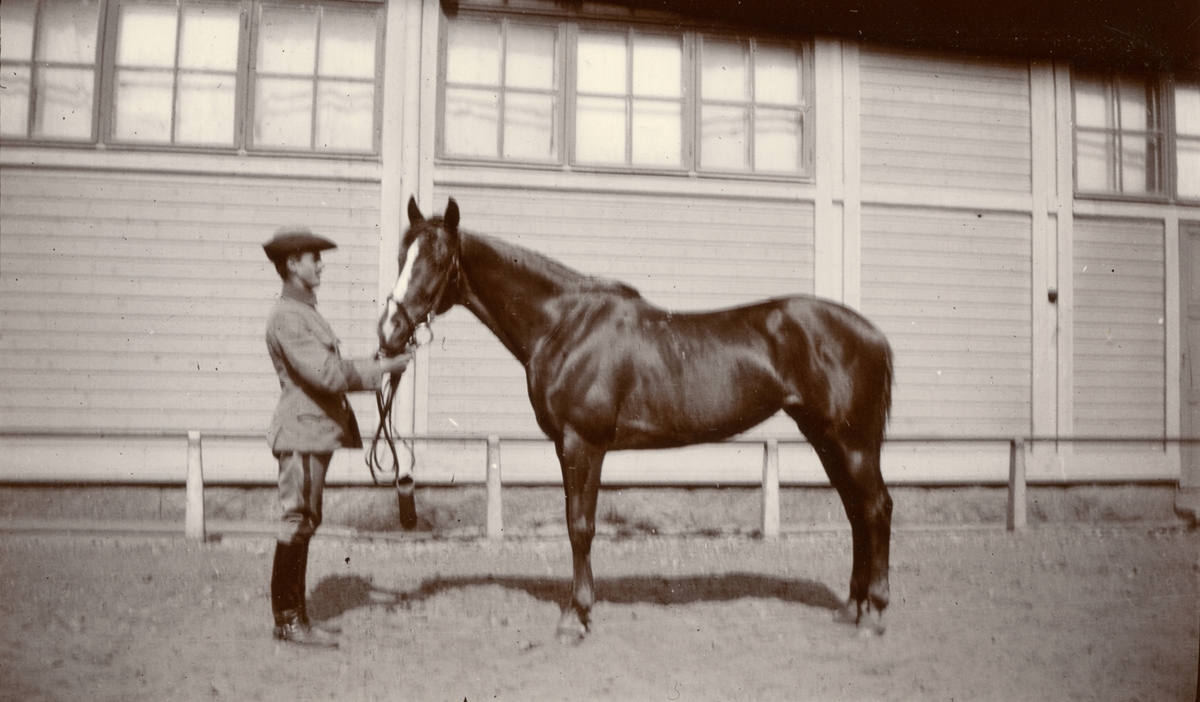 Titel: Rosén vid Skånska dragonregementet K 6 med hästen Snare.