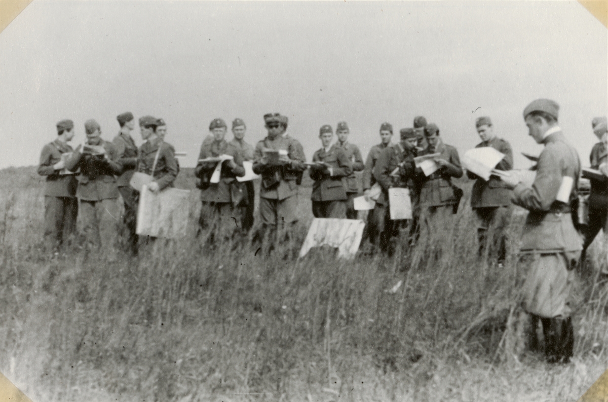 Titel: Text i fotoalbum: "Hk sista fältövning vid Ystad 1943".