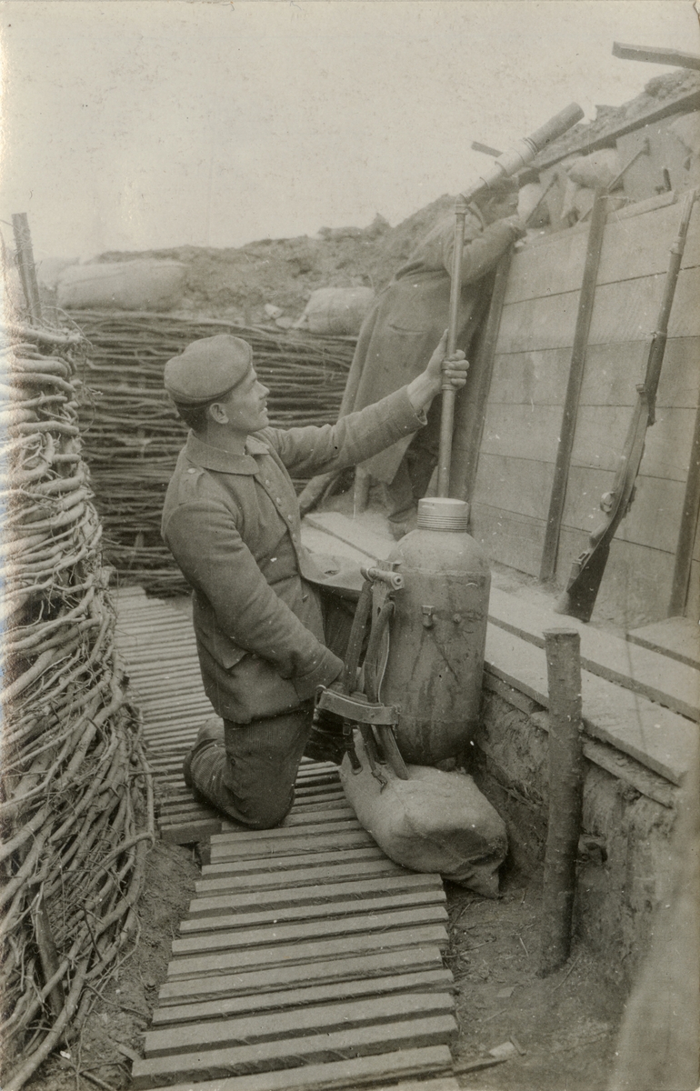 Titel: Soldat med eldspruta.