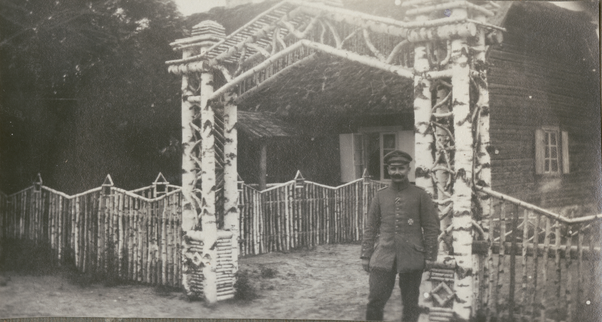 Titel: Text i fotoalbum: "Hauptman Giesel som t. f. bataljonskommendör."