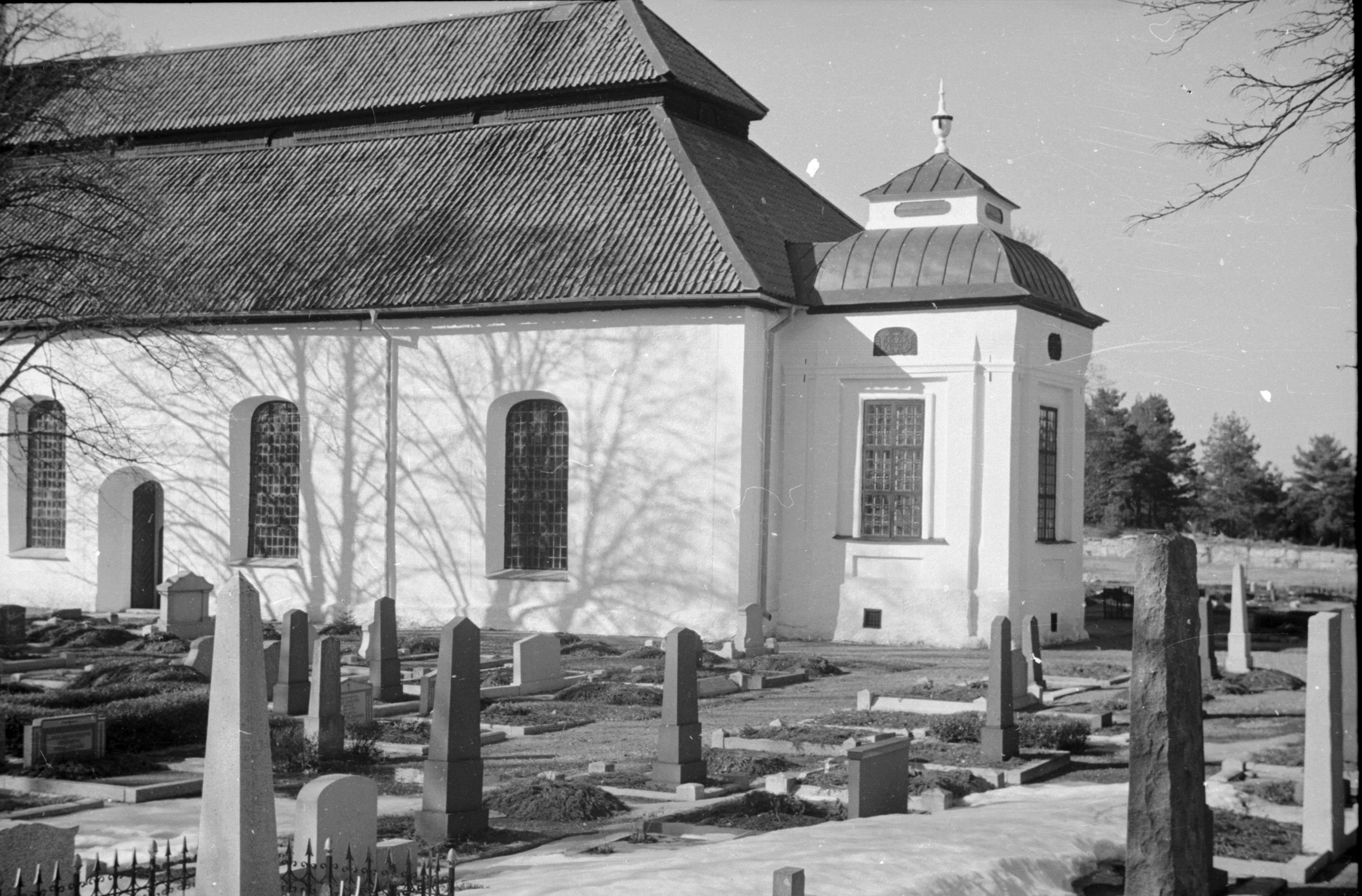 Kyrkan från sydöst med det Reuterska gravkoret.