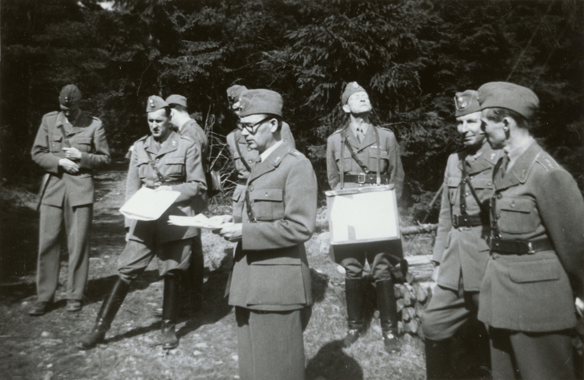 Titel: Text i fotoalbum: "Intfälttjänstövning våren 1951. Jönsson föredrager sin uppgift".