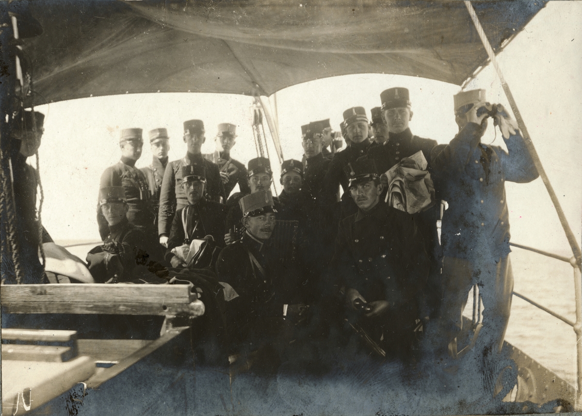 Soldater på båtresa på väg mot Läckö slott, Fortifikationen.