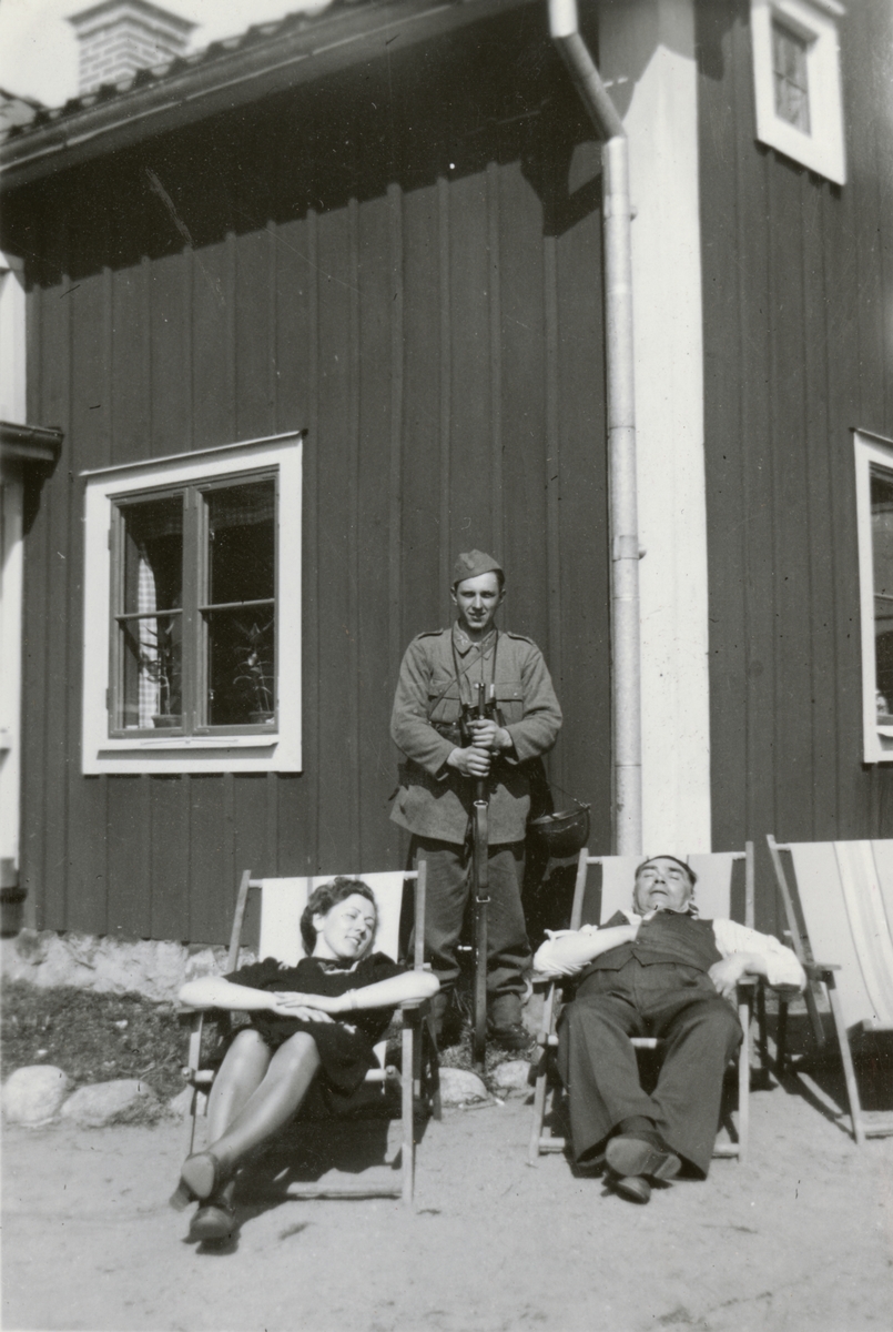 Titel: Vilopaus vid huset.