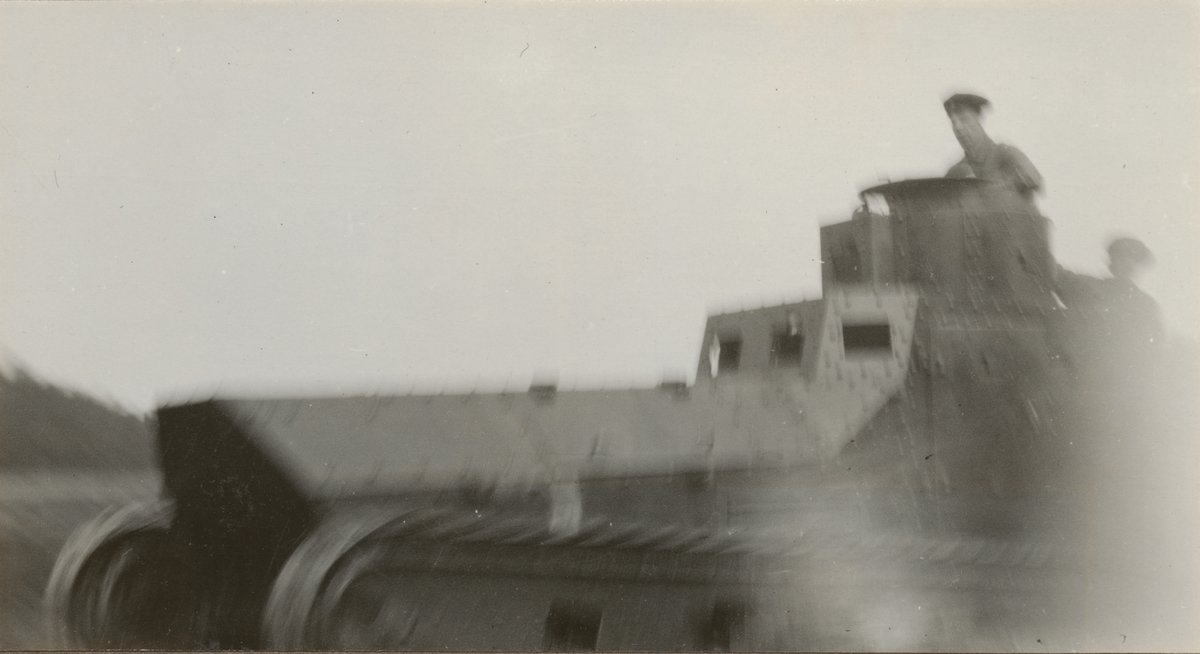 Titel: Fältövning med stridsvagn m/1921 (eller m/1921-1929). Göta livgardes stridsvagnsbataljon år 1929.