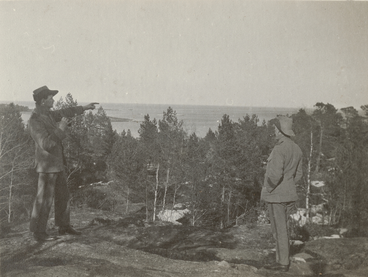 Titel: Två soldater på berget bevakar omgivningen.