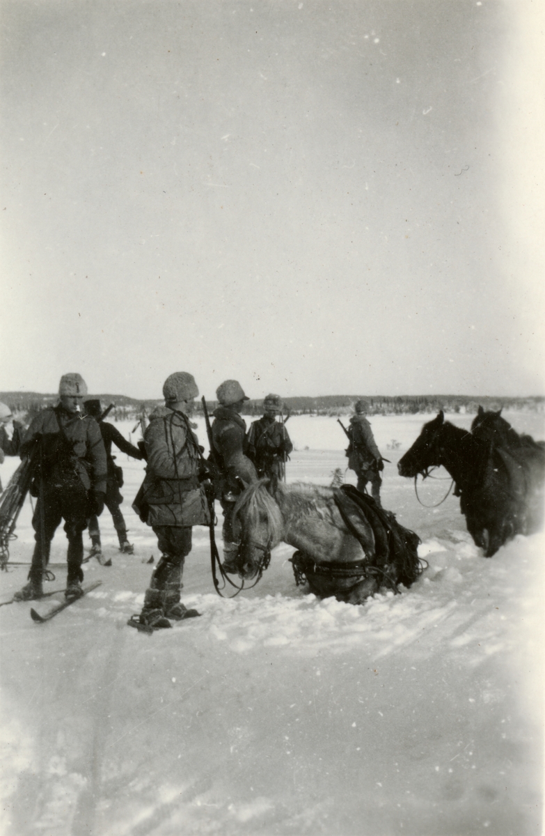 Text i fotoalbum: "Vinterövningarna 1930. Övningsmarsch Björnänge-Kallsjön den 19.-20. febr. Bra snödjup".
