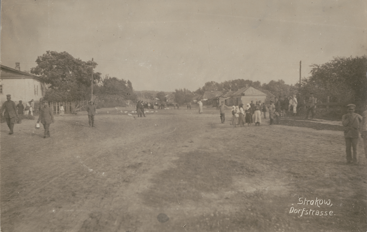 Titel: Text i fotoalbum: "Juli 18. Byn Strokow dit jag var förlagd en tid med 4de kompaniet."