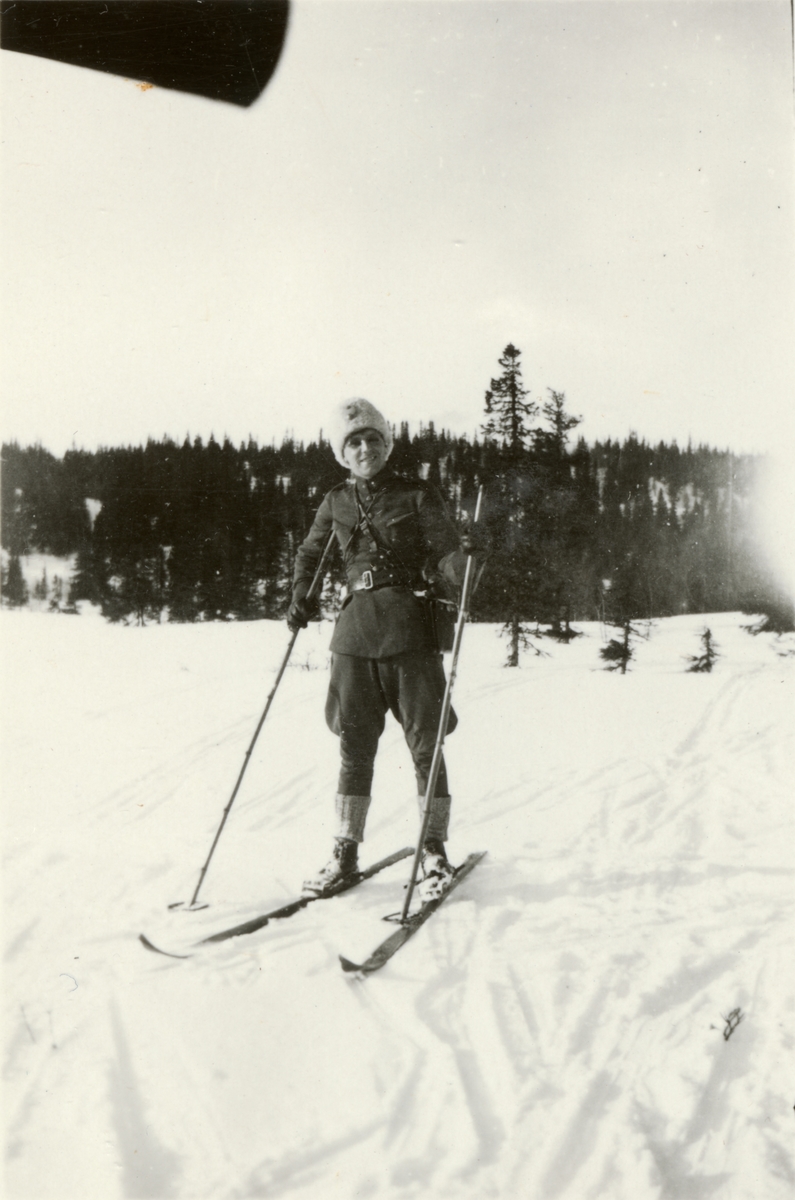 Titel: Text i fotoalbum: "Vinterövningar med plogkolonn. Befälet. Jag".